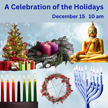 December is filled with holidays from around the world–and around our congregation! Please join us for this intergenerational celebration with music and stories as we honor the many beautiful and sacred traditions within and beyond our Chalice community.